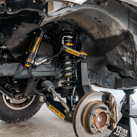 Our coilovers are tuned around a 700 lb spring to give you maximum adjustability without compromise. They deliver a comfortable, predictable ride for daily use while allowing additional preload for gear like bumpers or winches without risking coil bind or requiring a spring change.