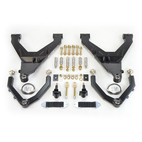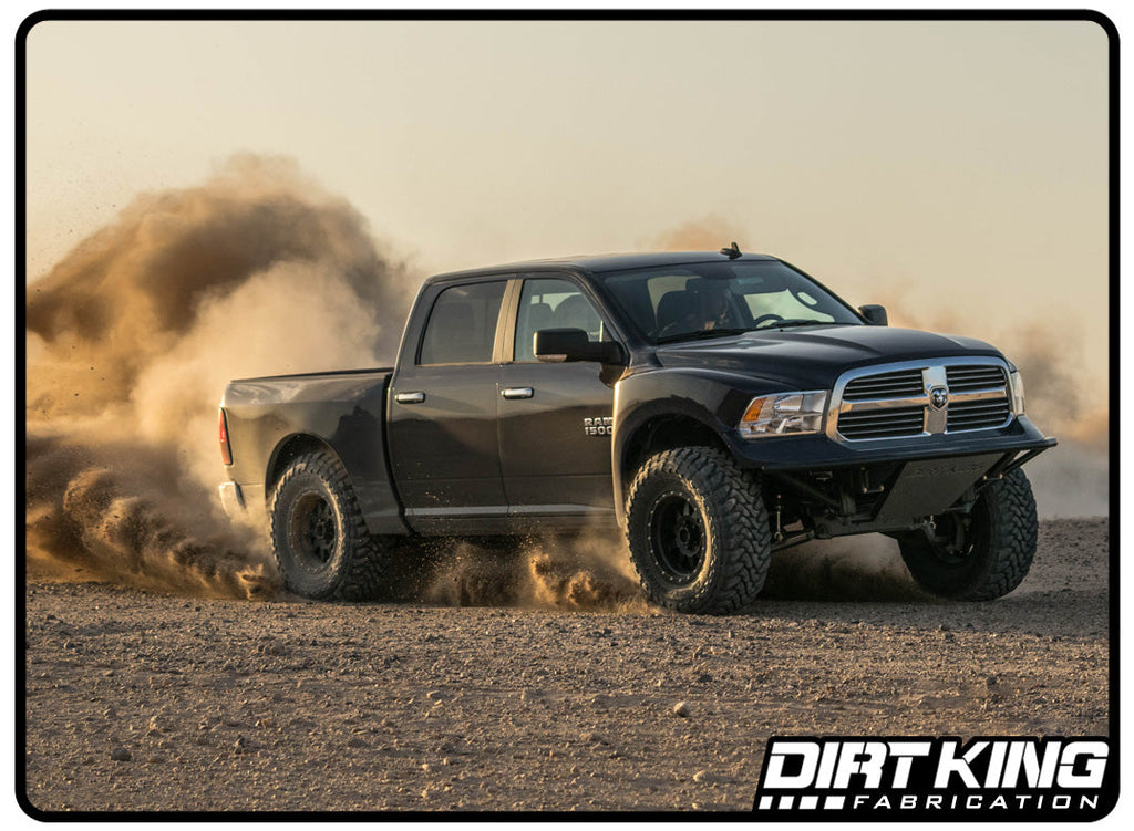 The Dirt King long travel kit was developed to drastically improve the vehicles off-road handling without compromising its day to day driving characteristics. This suspension system allows for 13.5” of travel and accepts up to a 37” tire. The kit is compatible with 2WD models and 4WD models along with the purchase of extended axle shafts. Our upper and lower arms are designed with 1” stainless steel uniballs for the outer pivots instead of ball joints for strength and increased articulation. This kit is the first of its kind, it’s a complete bolt on application with no cutting or welding to the frame on 4WD models. The suspension system was originally developed for Ram Trucks new concept vehicle, the Ram Rebel TRX which was released in mid-2016. After its amazing performance we decided to put the kit in production and make it available to the public!