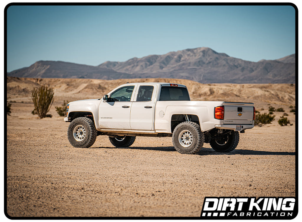 The Dirt King long travel leaf springs are a 13 leaf progressive rate pack that are specifically designed for the 1999-2018 Silverado 1500 and Sierra 1500. These springs offer additional down travel, surpassing factory leaf springs, for enhanced articulation and conquering rough terrain. They also increase rear ride height by 1.5 inches, improving ground clearance and better ratio between upward and downward suspension travel. For optimal off-road performance, we recommend combining these leaf springs with the Dirt King shackle and hanger kit, bed cage, and bed cage spec bypass shocks.