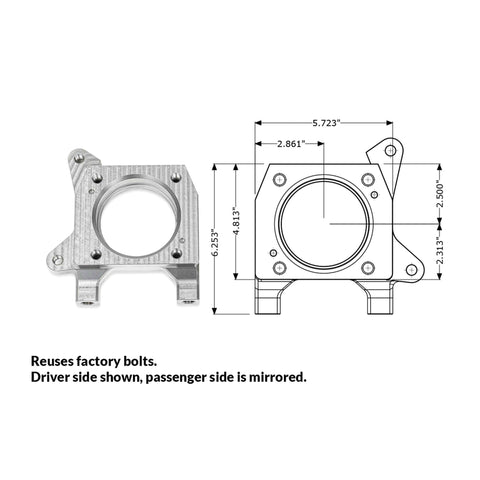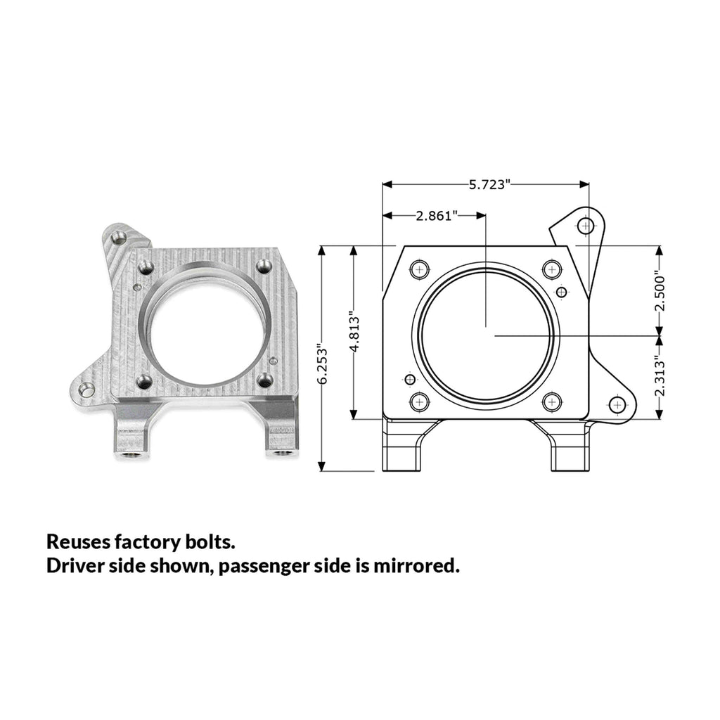 The Dirt King snout blocks are cut by water jet from 5/8" thick 1045 steel and then precision machined for a perfect fit for the factory hub. These snout blocks besides the Tacoma, require after market hardware to install the hub and can be purchased for an additional price. These snout blocks are sold as a pair.