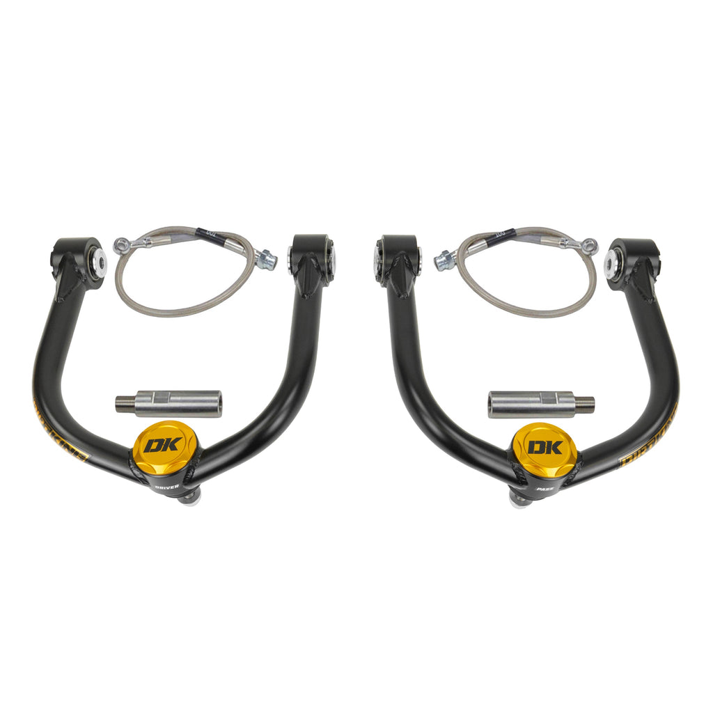 The Titan swap kit is the most affordable route to improve your vehicle’s front-end handling. This kit is developed to pair with Titan lower control arms to increase the front track width 3” per side. The kit is both 2WD and 4WD compatible along with the purchase of extended axle shafts. The upper control arms are designed with increased castor and repositioned pivot angles reducing stress on the joints. The increased castor allows for proper alignment and improved handling. We also replaced the weak factory ball joints with ProBearing Pro4 Ball Joints for maximum strength and increased articulation. All of the components on our upper control arms are rebuild-able or replaceable to make this product last a lifetime. The arms come preassembled and include detailed instructions for easy installation.