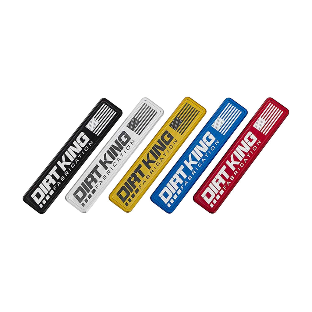 The Dirt King machined logo plates are made from 6061 billet aluminum. The interchangeable logo plates have pins that mate it to the control arm for perfect alignment and attach with 3M high adhesion double stick tape. These replace the brushed stainless steel logo plates that come on the boxed upper control arms.